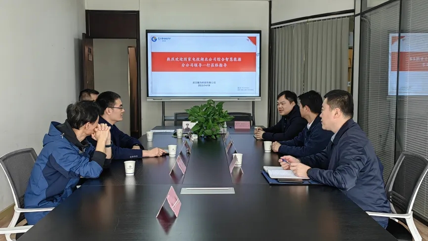 在總經(jīng)理張俊龍博士的陪同下,國(guó)家電投湖北公司綜合智慧能源分公司總經(jīng)理萬(wàn)海先生一行人調(diào)研參觀了敢為科技的生產(chǎn)基地、文化展示中心、深入溝通了解了敢為科技智能制造生產(chǎn)線、企業(yè)發(fā)展歷程、產(chǎn)業(yè)布局等。