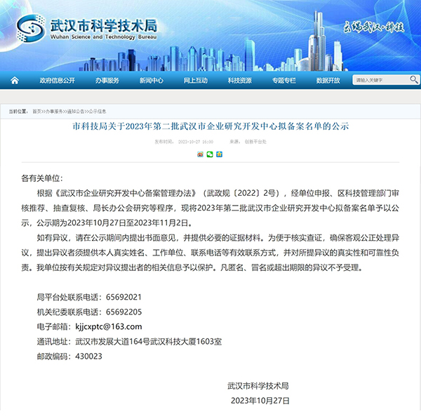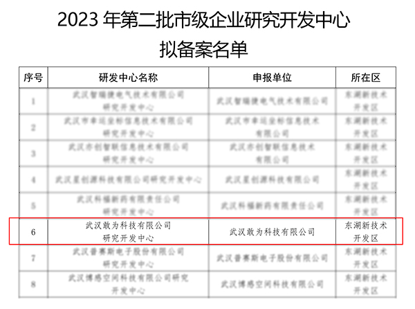 經(jīng)單位申報、區(qū)科技管理部門審核推薦、抽查復(fù)核、局長辦公會研究等嚴(yán)苛程序,《2023年第二批武漢市企業(yè)研究開發(fā)中心擬備案名單》于近日正式公布,敢為科技入選。