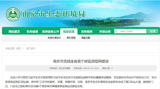 近日,南京市生態(tài)環(huán)境局官網(wǎng)、官微發(fā)布了關(guān)于《南京市完成全省首個碳監(jiān)測組網(wǎng)建設(shè)》的最新進展。南京市生態(tài)環(huán)境局在全省率先完成了浦口沿山大道、鼓樓新門口、六合化工園和溧水白馬鎮(zhèn)4個典型城市高精度碳監(jiān)測站點建設(shè)任務(wù)。